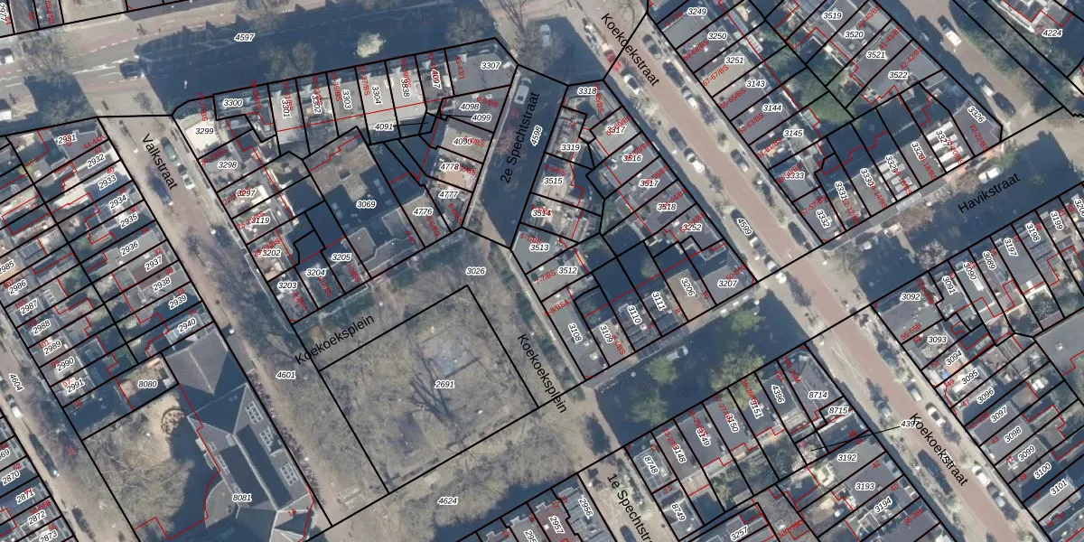 Het perceel waarop Koekoeksplein 7 staat heeft een oppervlakte van 89 m². Dit is een klein perceel. De perceeloppervlakte wordt geregistreerd door het Kadaster. Gedetailleerde informatie over de maten van dit perceel kunt u vinden in het rapport Kadastrale kaart met maatvoering van Koekoeksplein 7.