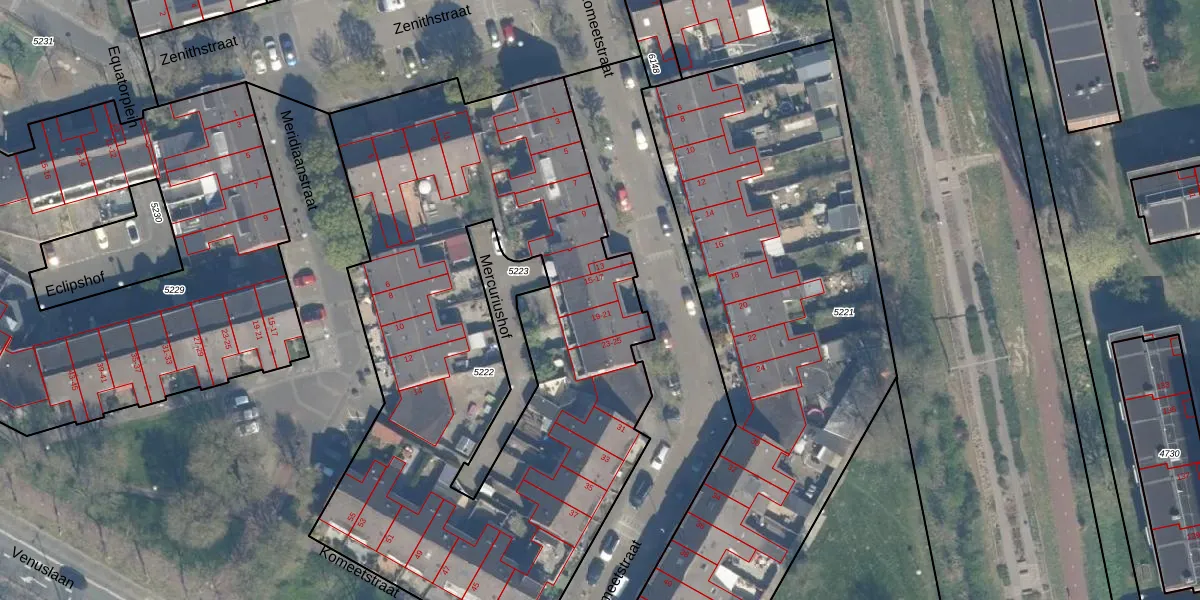 Het perceel waarop Komeetstraat 17 staat heeft een oppervlakte van 3508 m². Dit is een zeer groot perceel. De perceeloppervlakte wordt geregistreerd door het Kadaster. Gedetailleerde informatie over de maten van dit perceel kunt u vinden in het rapport Kadastrale kaart met maatvoering van Komeetstraat 17.
