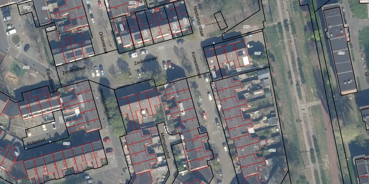 Het perceel waarop Komeetstraat 3 staat heeft een oppervlakte van 3508 m². Dit is een zeer groot perceel. De perceeloppervlakte wordt geregistreerd door het Kadaster. Gedetailleerde informatie over de maten van dit perceel kunt u vinden in het rapport Kadastrale kaart met maatvoering van Komeetstraat 3.