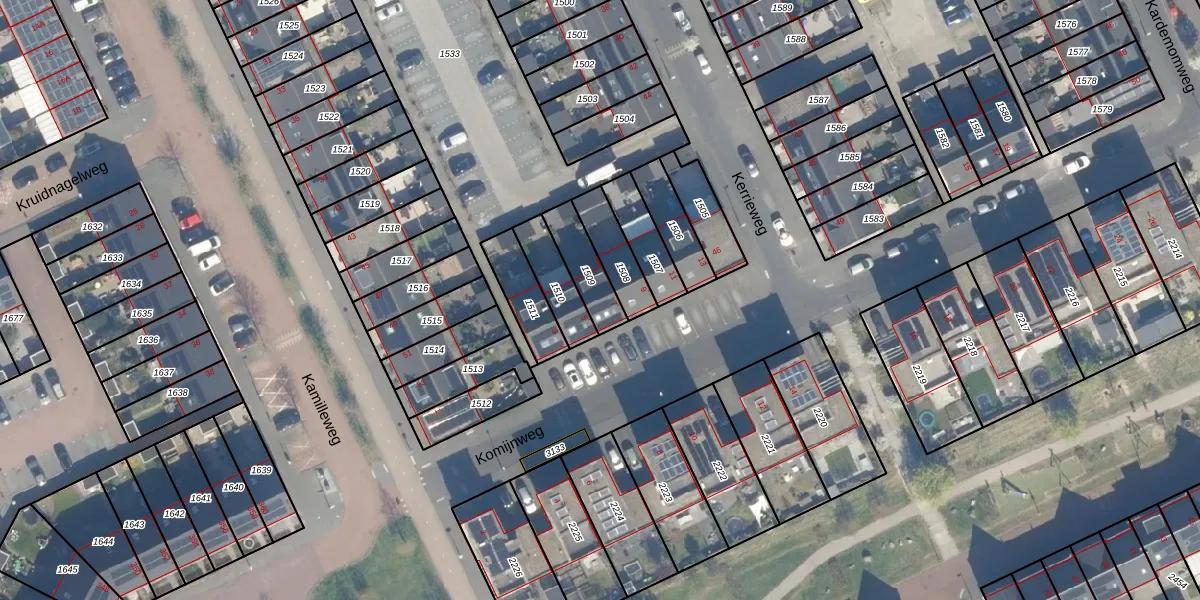 Het perceel waarop Komijnweg 7 staat heeft een oppervlakte van 122 m². Dit is een middelgroot perceel. De perceeloppervlakte wordt geregistreerd door het Kadaster. Gedetailleerde informatie over de maten van dit perceel kunt u vinden in het rapport Kadastrale kaart met maatvoering van Komijnweg 7.