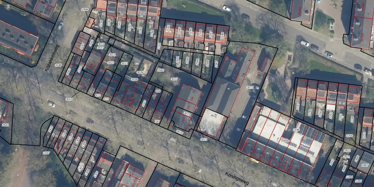 Het perceel waarop Koningsweg 108 staat heeft een oppervlakte van 566 m². Dit is een groot perceel. De perceeloppervlakte wordt geregistreerd door het Kadaster. Gedetailleerde informatie over de maten van dit perceel kunt u vinden in het rapport Kadastrale kaart met maatvoering van Koningsweg 108.