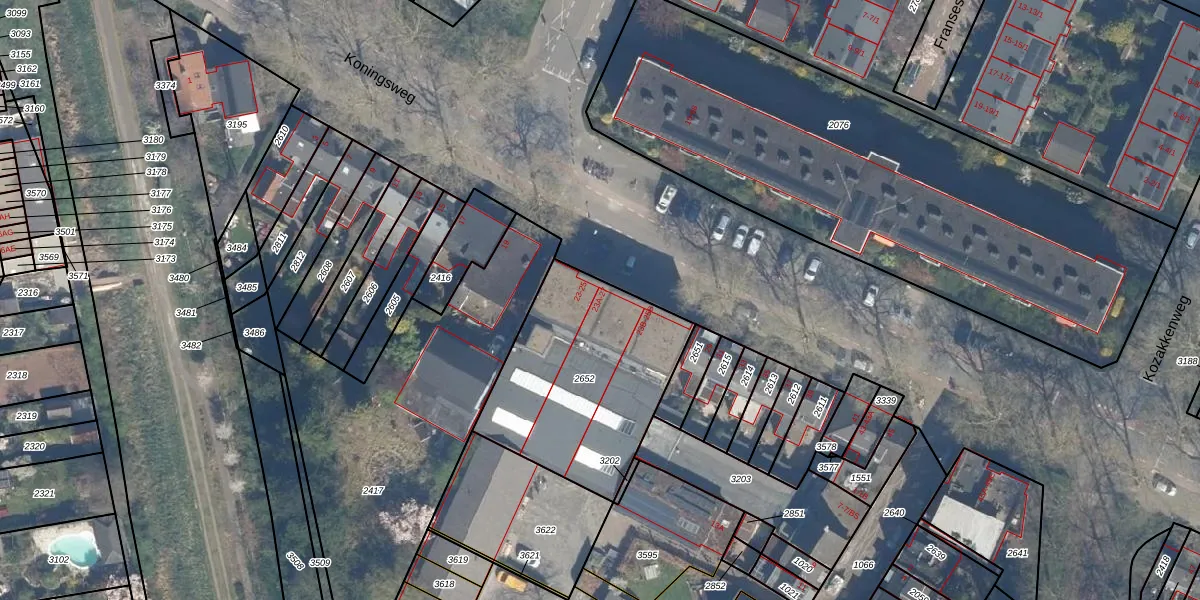 Het perceel waarop Koningsweg 23-A staat heeft een oppervlakte van 837 m². Dit is een groot perceel. De perceeloppervlakte wordt geregistreerd door het Kadaster. Gedetailleerde informatie over de maten van dit perceel kunt u vinden in het rapport Kadastrale kaart met maatvoering van Koningsweg 23-A.