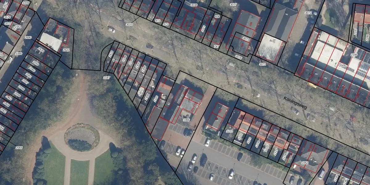 Het perceel waarop Koningsweg 65-A staat heeft een oppervlakte van 967 m². Dit is een groot perceel. De perceeloppervlakte wordt geregistreerd door het Kadaster. Gedetailleerde informatie over de maten van dit perceel kunt u vinden in het rapport Kadastrale kaart met maatvoering van Koningsweg 65-A.