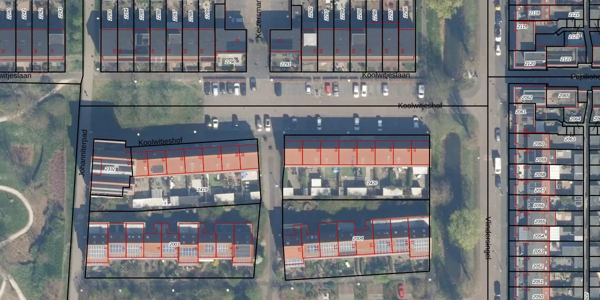 Koolwitjeshof 30 is gelegen op kadastraal perceel UTT00V2420. Deze kadastrale aanduiding is uniek en wordt gebruikt door het Kadaster om eigendomsrechten en andere zakelijke rechten vast te leggen. Het perceel maakt onderdeel uit van de kadastrale gemeente Utrecht.