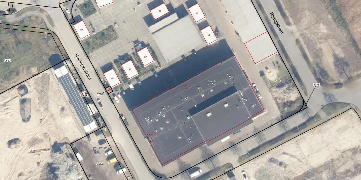 Het perceel waarop Koploperstraat 50 staat heeft een oppervlakte van 9977 m². Dit is een zeer groot perceel. De perceeloppervlakte wordt geregistreerd door het Kadaster. Gedetailleerde informatie over de maten van dit perceel kunt u vinden in het rapport Kadastrale kaart met maatvoering van Koploperstraat 50.