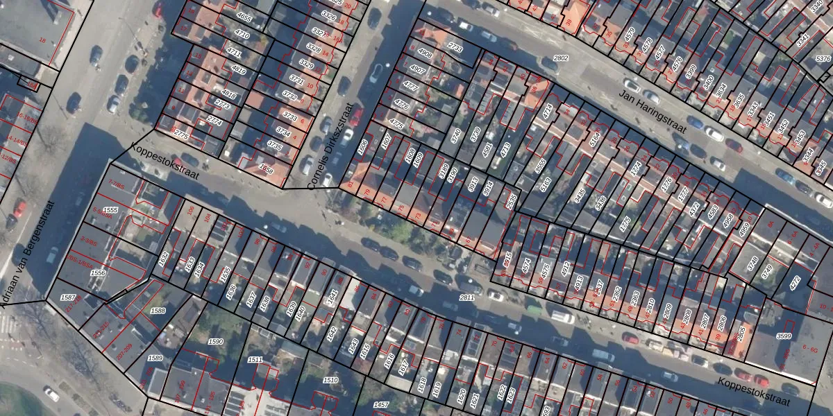 Gebruik de zoekbalk of klik op een perceel voor informatie over de adressen binnen dit perceel.