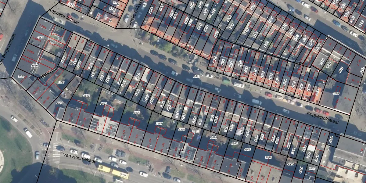 Het perceel waarop Koppestokstraat 76 staat heeft een oppervlakte van 88 m². Dit is een klein perceel. De perceeloppervlakte wordt geregistreerd door het Kadaster. Gedetailleerde informatie over de maten van dit perceel kunt u vinden in het rapport Kadastrale kaart met maatvoering van Koppestokstraat 76.