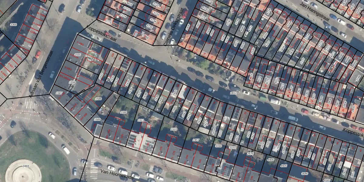 Het perceel waarop Koppestokstraat 86 staat heeft een oppervlakte van 89 m². Dit is een klein perceel. De perceeloppervlakte wordt geregistreerd door het Kadaster. Gedetailleerde informatie over de maten van dit perceel kunt u vinden in het rapport Kadastrale kaart met maatvoering van Koppestokstraat 86.