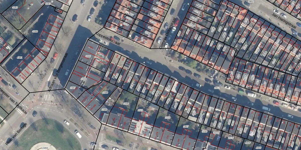 Gebruik de zoekbalk of klik op een perceel voor informatie over de adressen binnen dit perceel.