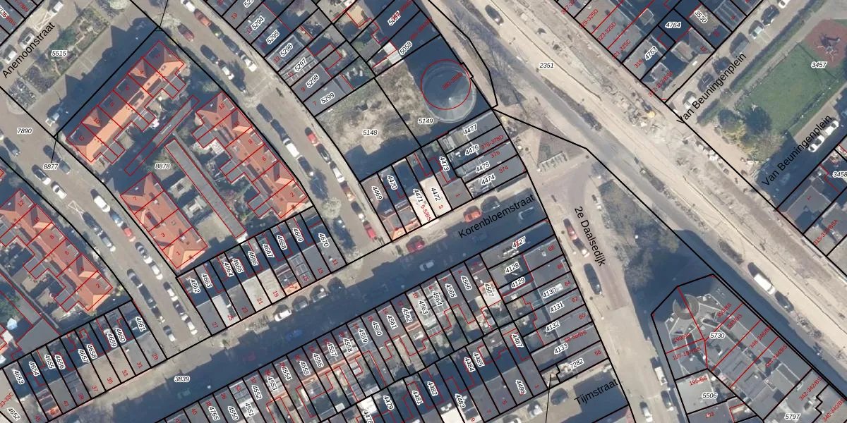 Korenbloemstraat 5-BS is gelegen op kadastraal perceel CTR00B4471. Deze kadastrale aanduiding is uniek en wordt gebruikt door het Kadaster om eigendomsrechten en andere zakelijke rechten vast te leggen. Het perceel maakt onderdeel uit van de kadastrale gemeente Catharijne.