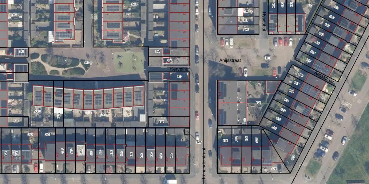 Het perceel waarop Korianderstraat 8 staat heeft een oppervlakte van 1602 m². Dit is een zeer groot perceel. De perceeloppervlakte wordt geregistreerd door het Kadaster. Gedetailleerde informatie over de maten van dit perceel kunt u vinden in het rapport Kadastrale kaart met maatvoering van Korianderstraat 8.