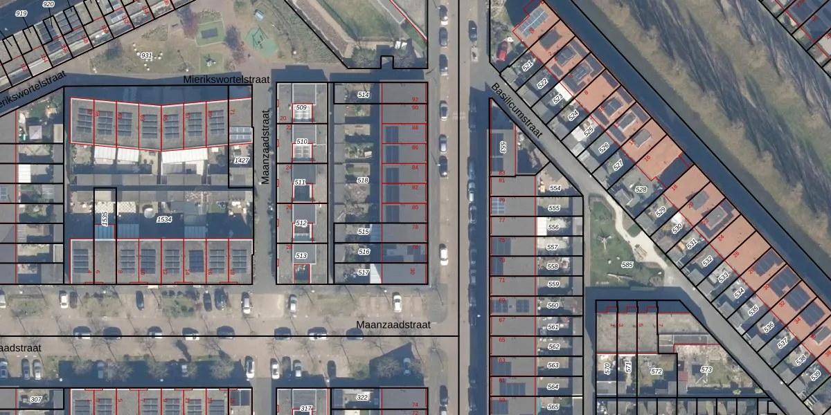 Het perceel waarop Korianderstraat 80 staat heeft een oppervlakte van 724 m². Dit is een groot perceel. De perceeloppervlakte wordt geregistreerd door het Kadaster. Gedetailleerde informatie over de maten van dit perceel kunt u vinden in het rapport Kadastrale kaart met maatvoering van Korianderstraat 80.