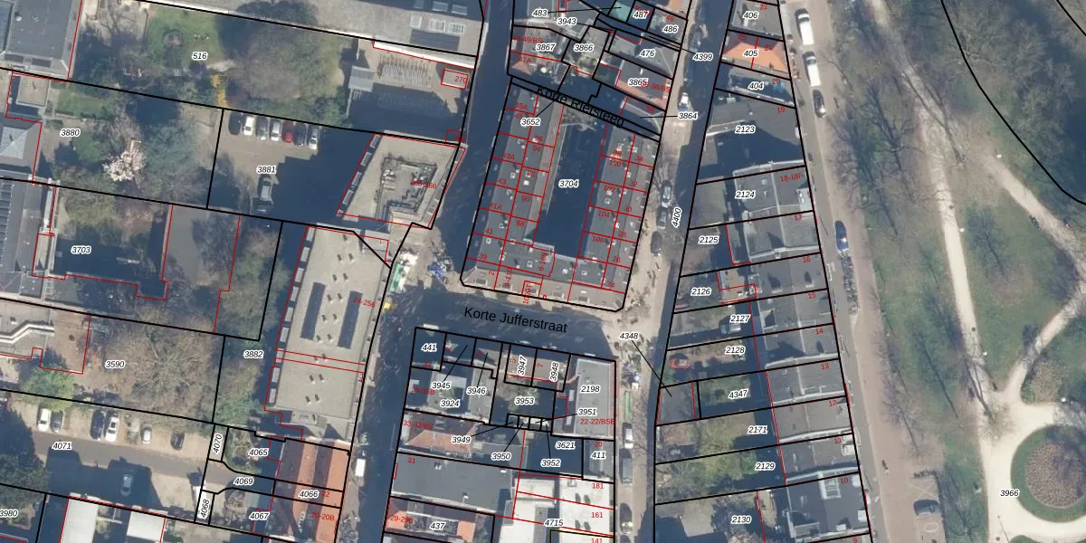 Het perceel waarop Korte Jufferstraat 50 staat heeft een oppervlakte van 1047 m². Dit is een zeer groot perceel. De perceeloppervlakte wordt geregistreerd door het Kadaster. Gedetailleerde informatie over de maten van dit perceel kunt u vinden in het rapport Kadastrale kaart met maatvoering van Korte Jufferstraat 50.
