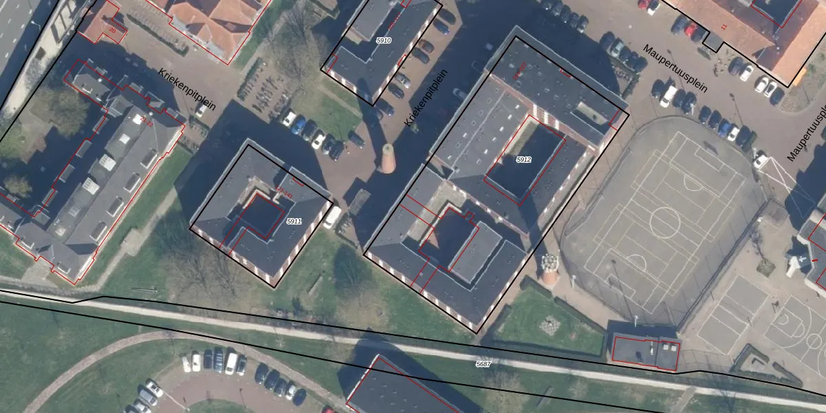 Het perceel waarop Kriekenpitplein 152 staat heeft een oppervlakte van 2160 m². Dit is een zeer groot perceel. De perceeloppervlakte wordt geregistreerd door het Kadaster. Gedetailleerde informatie over de maten van dit perceel kunt u vinden in het rapport Kadastrale kaart met maatvoering van Kriekenpitplein 152.