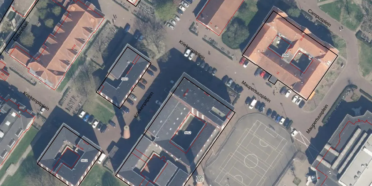 Het perceel waarop Kriekenpitplein 176 staat heeft een oppervlakte van 2160 m². Dit is een zeer groot perceel. De perceeloppervlakte wordt geregistreerd door het Kadaster. Gedetailleerde informatie over de maten van dit perceel kunt u vinden in het rapport Kadastrale kaart met maatvoering van Kriekenpitplein 176.