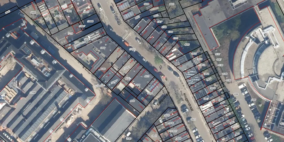 Krugerstraat 13 is gelegen op kadastraal perceel CTR00D4523. Deze kadastrale aanduiding is uniek en wordt gebruikt door het Kadaster om eigendomsrechten en andere zakelijke rechten vast te leggen. Het perceel maakt onderdeel uit van de kadastrale gemeente Catharijne.