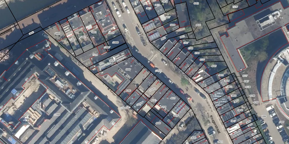 Krugerstraat 5-B is gelegen op kadastraal perceel CTR00D8390. Deze kadastrale aanduiding is uniek en wordt gebruikt door het Kadaster om eigendomsrechten en andere zakelijke rechten vast te leggen. Het perceel maakt onderdeel uit van de kadastrale gemeente Catharijne.