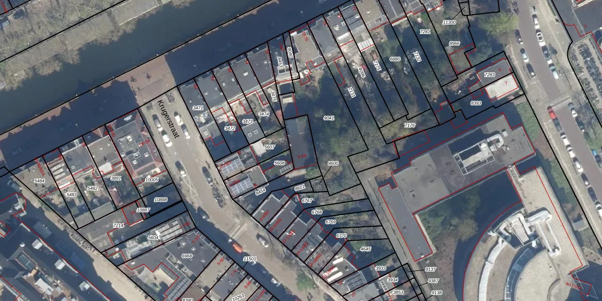 Krugerstraat 6 is gelegen op kadastraal perceel CTR00D8454. Deze kadastrale aanduiding is uniek en wordt gebruikt door het Kadaster om eigendomsrechten en andere zakelijke rechten vast te leggen. Het perceel maakt onderdeel uit van de kadastrale gemeente Catharijne.