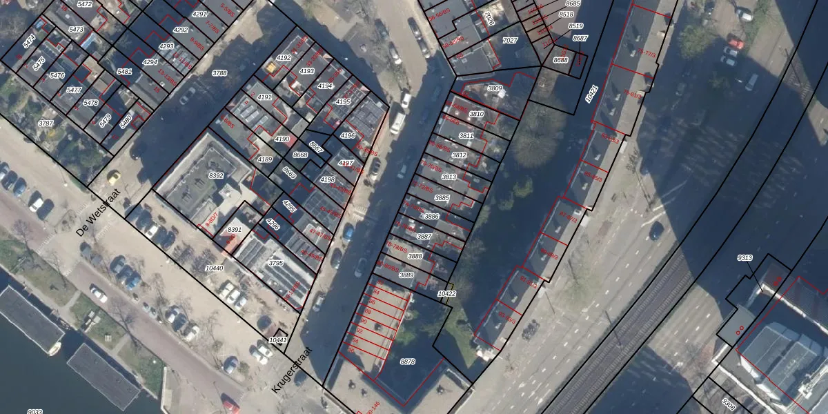 Het perceel waarop Krugerstraat 74-BS staat heeft een oppervlakte van 94 m². Dit is een klein perceel. De perceeloppervlakte wordt geregistreerd door het Kadaster. Gedetailleerde informatie over de maten van dit perceel kunt u vinden in het rapport Kadastrale kaart met maatvoering van Krugerstraat 74-BS.