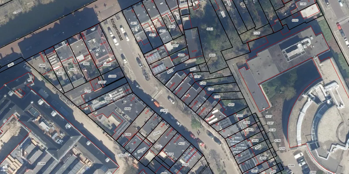 Krugerstraat 8 is gelegen op kadastraal perceel CTR00D8601. Deze kadastrale aanduiding is uniek en wordt gebruikt door het Kadaster om eigendomsrechten en andere zakelijke rechten vast te leggen. Het perceel maakt onderdeel uit van de kadastrale gemeente Catharijne.