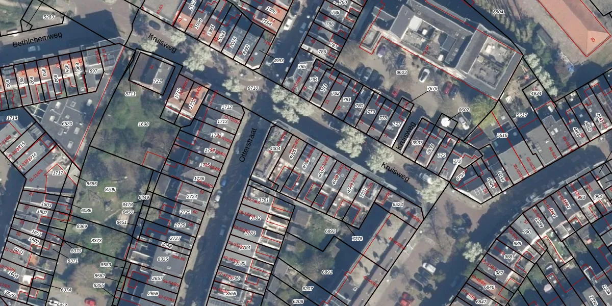 Het perceel waarop Kruisweg 20 staat heeft een oppervlakte van 104 m². Dit is een middelgroot perceel. De perceeloppervlakte wordt geregistreerd door het Kadaster. Gedetailleerde informatie over de maten van dit perceel kunt u vinden in het rapport Kadastrale kaart met maatvoering van Kruisweg 20.