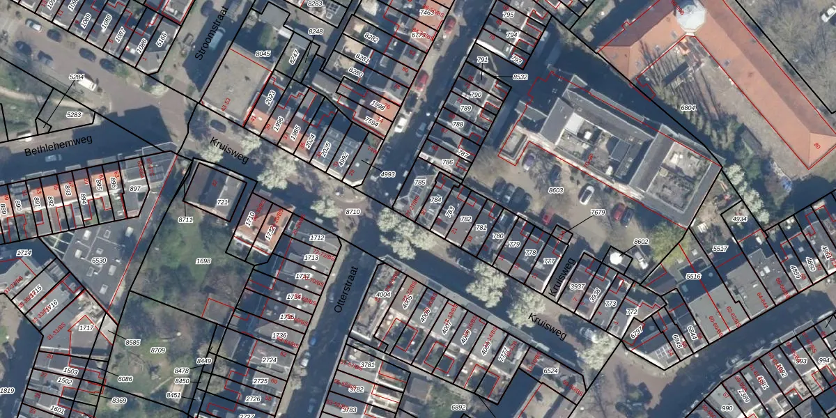 Het perceel waarop Kruisweg 27 staat heeft een oppervlakte van 104 m². Dit is een middelgroot perceel. De perceeloppervlakte wordt geregistreerd door het Kadaster. Gedetailleerde informatie over de maten van dit perceel kunt u vinden in het rapport Kadastrale kaart met maatvoering van Kruisweg 27.