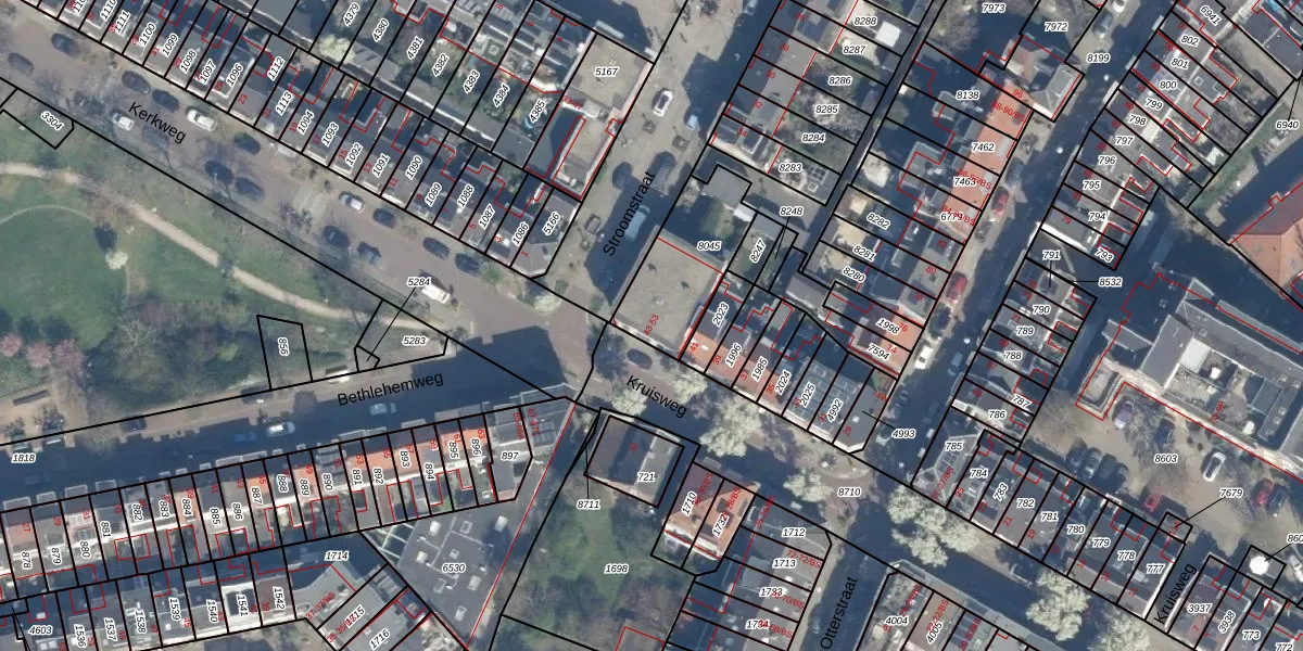 Het perceel waarop Kruisweg 45 staat heeft een oppervlakte van 330 m². Dit is een groot perceel. De perceeloppervlakte wordt geregistreerd door het Kadaster. Gedetailleerde informatie over de maten van dit perceel kunt u vinden in het rapport Kadastrale kaart met maatvoering van Kruisweg 45.