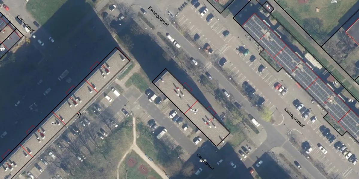 Kwangodreef 9 is gelegen op kadastraal perceel UTT00F609. Deze kadastrale aanduiding is uniek en wordt gebruikt door het Kadaster om eigendomsrechten en andere zakelijke rechten vast te leggen. Het perceel maakt onderdeel uit van de kadastrale gemeente Utrecht.