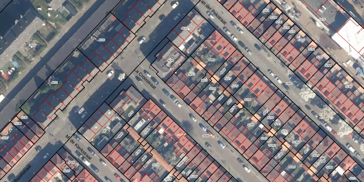 Het perceel waarop La Croixstraat 39 staat heeft een oppervlakte van 274 m². Dit is een middelgroot perceel. De perceeloppervlakte wordt geregistreerd door het Kadaster. Gedetailleerde informatie over de maten van dit perceel kunt u vinden in het rapport Kadastrale kaart met maatvoering van La Croixstraat 39.