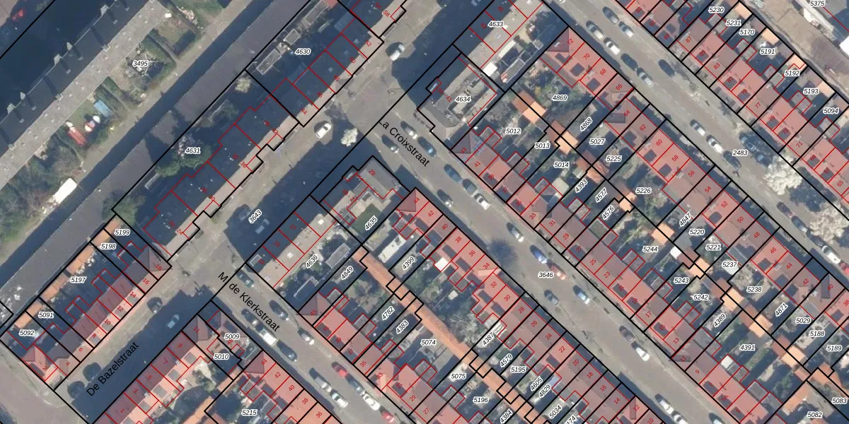 Het perceel waarop La Croixstraat 42 staat heeft een oppervlakte van 1089 m². Dit is een zeer groot perceel. De perceeloppervlakte wordt geregistreerd door het Kadaster. Gedetailleerde informatie over de maten van dit perceel kunt u vinden in het rapport Kadastrale kaart met maatvoering van La Croixstraat 42.