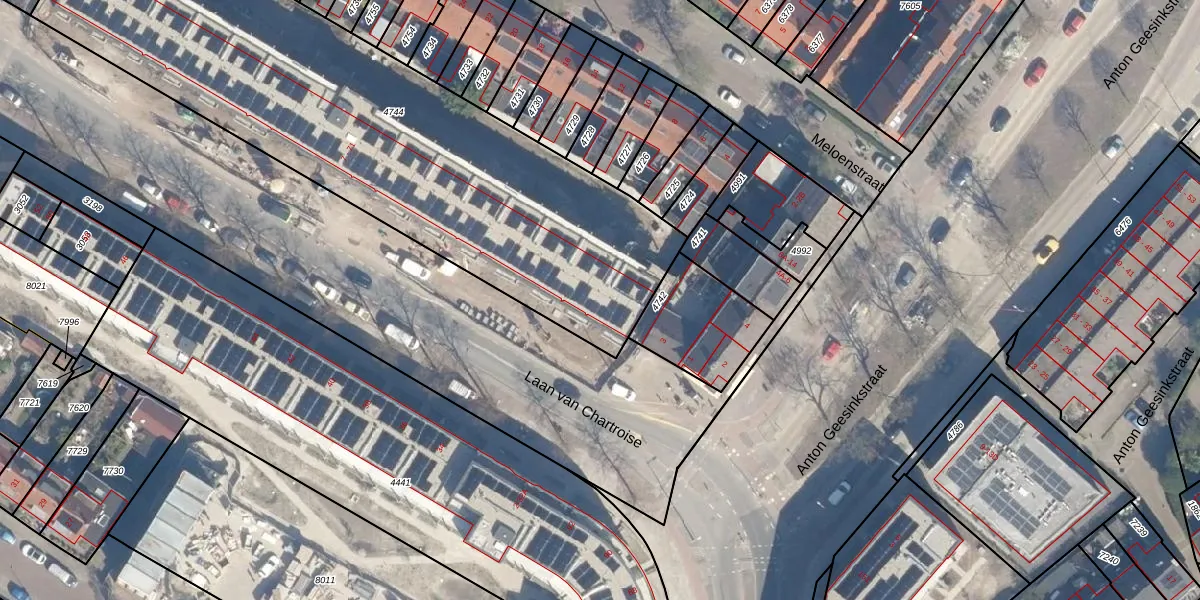 Laan van Chartroise 9 is gelegen op kadastraal perceel LWR01B4744. Deze kadastrale aanduiding is uniek en wordt gebruikt door het Kadaster om eigendomsrechten en andere zakelijke rechten vast te leggen. Het perceel maakt onderdeel uit van de kadastrale gemeente Lauwerecht.