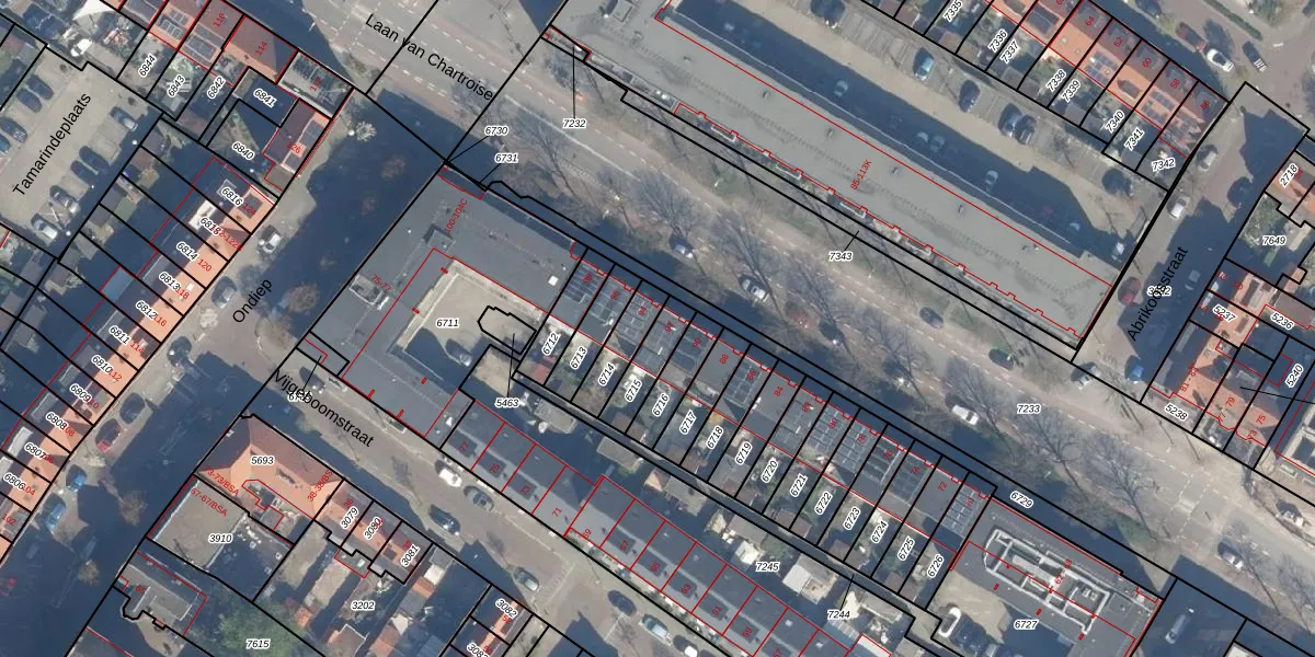 Gebruik de zoekbalk of klik op een perceel voor informatie over de adressen binnen dit perceel.