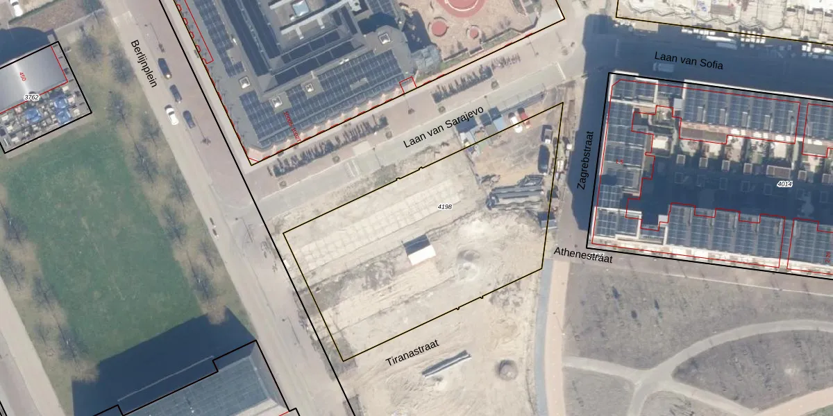 Het perceel waarop Laan van Sarajevo 41 staat heeft een oppervlakte van 2151 m². Dit is een zeer groot perceel. De perceeloppervlakte wordt geregistreerd door het Kadaster. Gedetailleerde informatie over de maten van dit perceel kunt u vinden in het rapport Kadastrale kaart met maatvoering van Laan van Sarajevo 41.