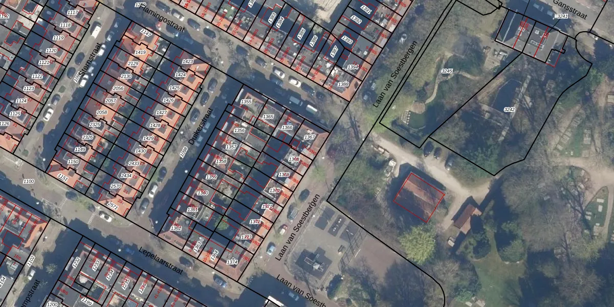 Laan van Soestbergen 13 is gelegen op kadastraal perceel TSG00B1367. Deze kadastrale aanduiding is uniek en wordt gebruikt door het Kadaster om eigendomsrechten en andere zakelijke rechten vast te leggen. Het perceel maakt onderdeel uit van de kadastrale gemeente Tolsteeg.