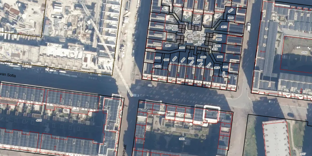 Gebruik de zoekbalk of klik op een perceel voor informatie over de adressen binnen dit perceel.