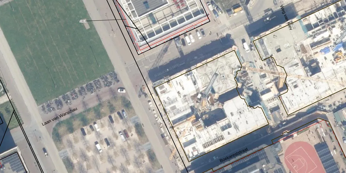 Het perceel waarop Laan van Warschau 19 staat heeft een oppervlakte van 2249 m². Dit is een zeer groot perceel. De perceeloppervlakte wordt geregistreerd door het Kadaster. Gedetailleerde informatie over de maten van dit perceel kunt u vinden in het rapport Kadastrale kaart met maatvoering van Laan van Warschau 19.