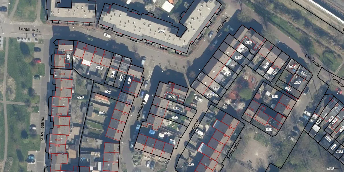 Het perceel waarop Lamstraat 57 staat heeft een oppervlakte van 165 m². Dit is een middelgroot perceel. De perceeloppervlakte wordt geregistreerd door het Kadaster. Gedetailleerde informatie over de maten van dit perceel kunt u vinden in het rapport Kadastrale kaart met maatvoering van Lamstraat 57.