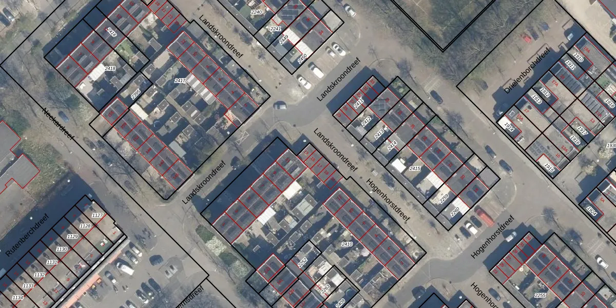 Landskroondreef 13 is gelegen op kadastraal perceel UTT00H2410. Deze kadastrale aanduiding is uniek en wordt gebruikt door het Kadaster om eigendomsrechten en andere zakelijke rechten vast te leggen. Het perceel maakt onderdeel uit van de kadastrale gemeente Utrecht.