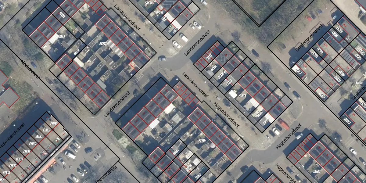 Landskroondreef 15 is gelegen op kadastraal perceel UTT00H2410. Deze kadastrale aanduiding is uniek en wordt gebruikt door het Kadaster om eigendomsrechten en andere zakelijke rechten vast te leggen. Het perceel maakt onderdeel uit van de kadastrale gemeente Utrecht.