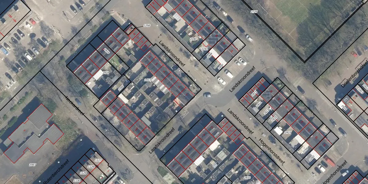 Landskroondreef 2 is gelegen op kadastraal perceel UTT00H2417. Deze kadastrale aanduiding is uniek en wordt gebruikt door het Kadaster om eigendomsrechten en andere zakelijke rechten vast te leggen. Het perceel maakt onderdeel uit van de kadastrale gemeente Utrecht.