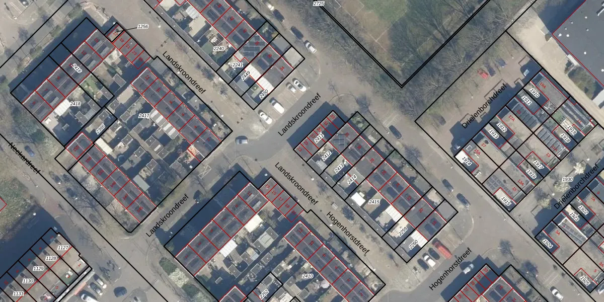 Landskroondreef 23 is gelegen op kadastraal perceel UTT00H2411. Deze kadastrale aanduiding is uniek en wordt gebruikt door het Kadaster om eigendomsrechten en andere zakelijke rechten vast te leggen. Het perceel maakt onderdeel uit van de kadastrale gemeente Utrecht.