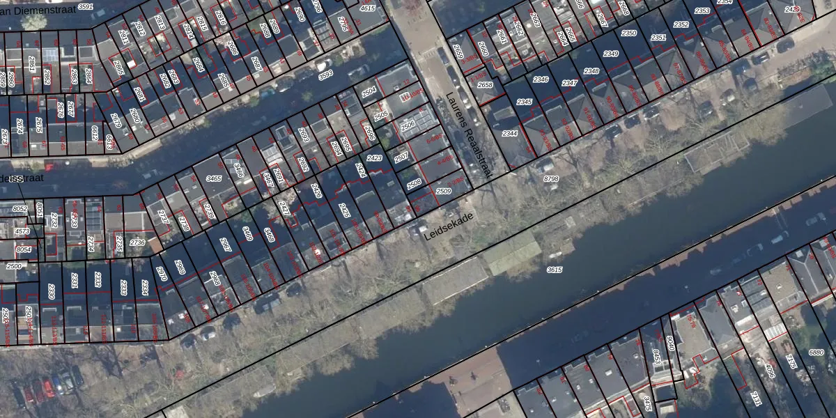 Het perceel waarop Leidsekade 96 staat heeft een oppervlakte van 88 m². Dit is een klein perceel. De perceeloppervlakte wordt geregistreerd door het Kadaster. Gedetailleerde informatie over de maten van dit perceel kunt u vinden in het rapport Kadastrale kaart met maatvoering van Leidsekade 96.