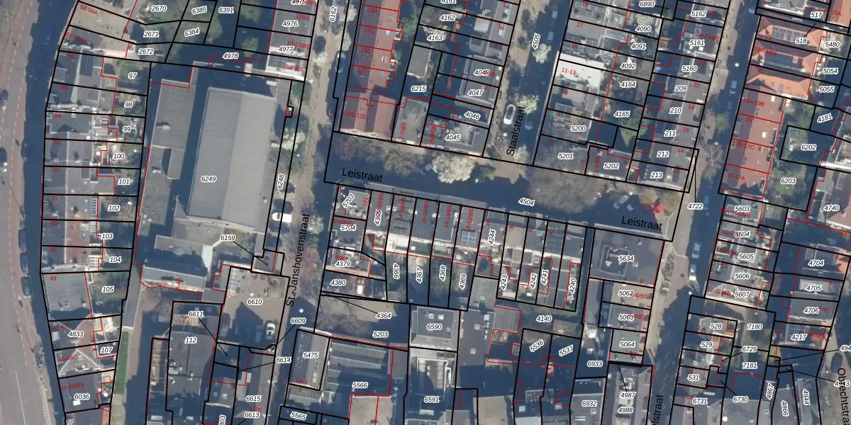 Leistraat 16-BS is gelegen op kadastraal perceel ASD40B4367. Deze kadastrale aanduiding is uniek en wordt gebruikt door het Kadaster om eigendomsrechten en andere zakelijke rechten vast te leggen. Het perceel maakt onderdeel uit van de kadastrale gemeente Abstede.