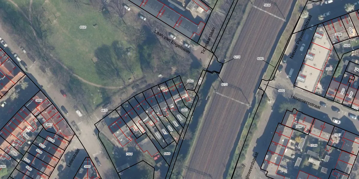 Het perceel waarop Leliestraat 57 staat heeft een oppervlakte van 103 m². Dit is een middelgroot perceel. De perceeloppervlakte wordt geregistreerd door het Kadaster. Gedetailleerde informatie over de maten van dit perceel kunt u vinden in het rapport Kadastrale kaart met maatvoering van Leliestraat 57.