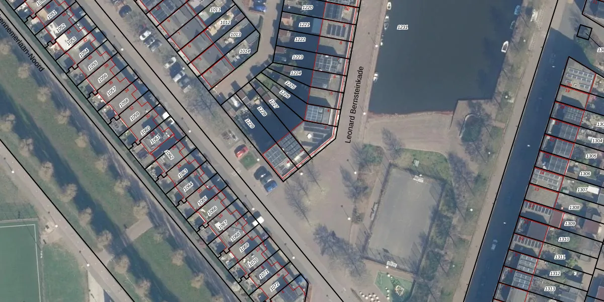 Het perceel waarop Leonard Bernsteinkade 2 staat heeft een oppervlakte van 186 m². Dit is een middelgroot perceel. De perceeloppervlakte wordt geregistreerd door het Kadaster. Gedetailleerde informatie over de maten van dit perceel kunt u vinden in het rapport Kadastrale kaart met maatvoering van Leonard Bernsteinkade 2.