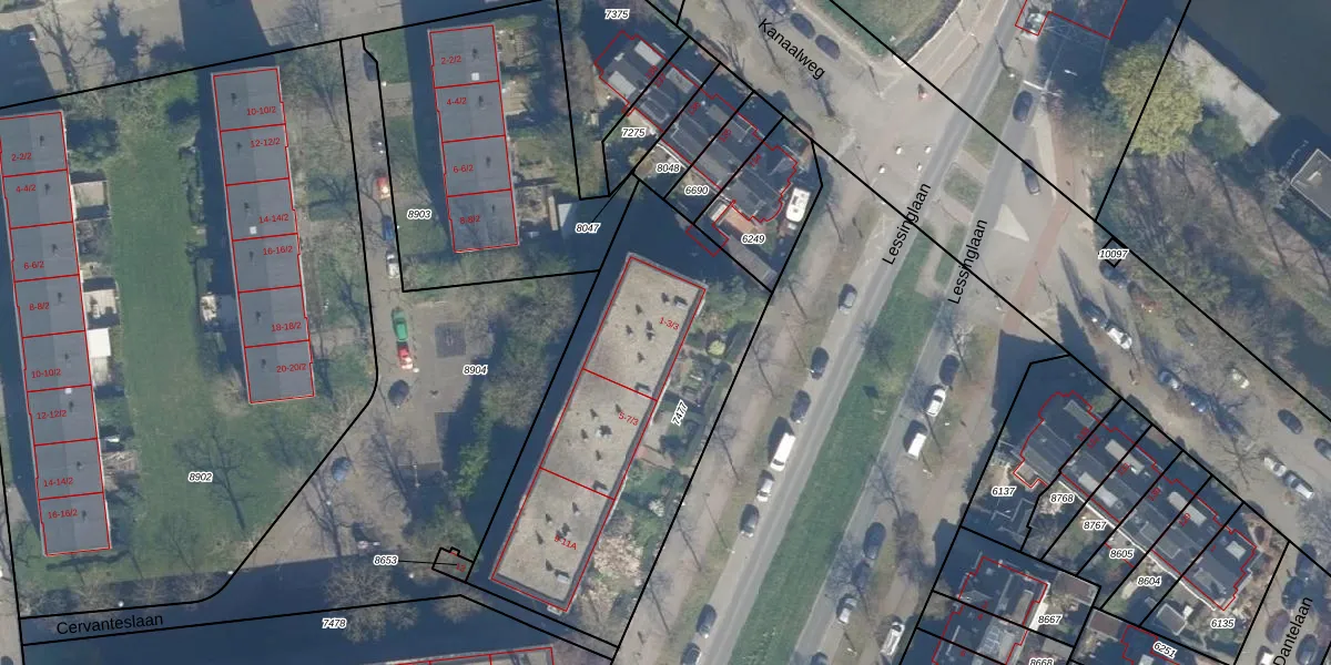 Lessinglaan 1 is gelegen op kadastraal perceel CTR00C7477. Deze kadastrale aanduiding is uniek en wordt gebruikt door het Kadaster om eigendomsrechten en andere zakelijke rechten vast te leggen. Het perceel maakt onderdeel uit van de kadastrale gemeente Catharijne.