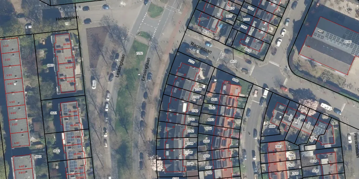 Lessinglaan 40 is gelegen op kadastraal perceel CTR00C7760. Deze kadastrale aanduiding is uniek en wordt gebruikt door het Kadaster om eigendomsrechten en andere zakelijke rechten vast te leggen. Het perceel maakt onderdeel uit van de kadastrale gemeente Catharijne.