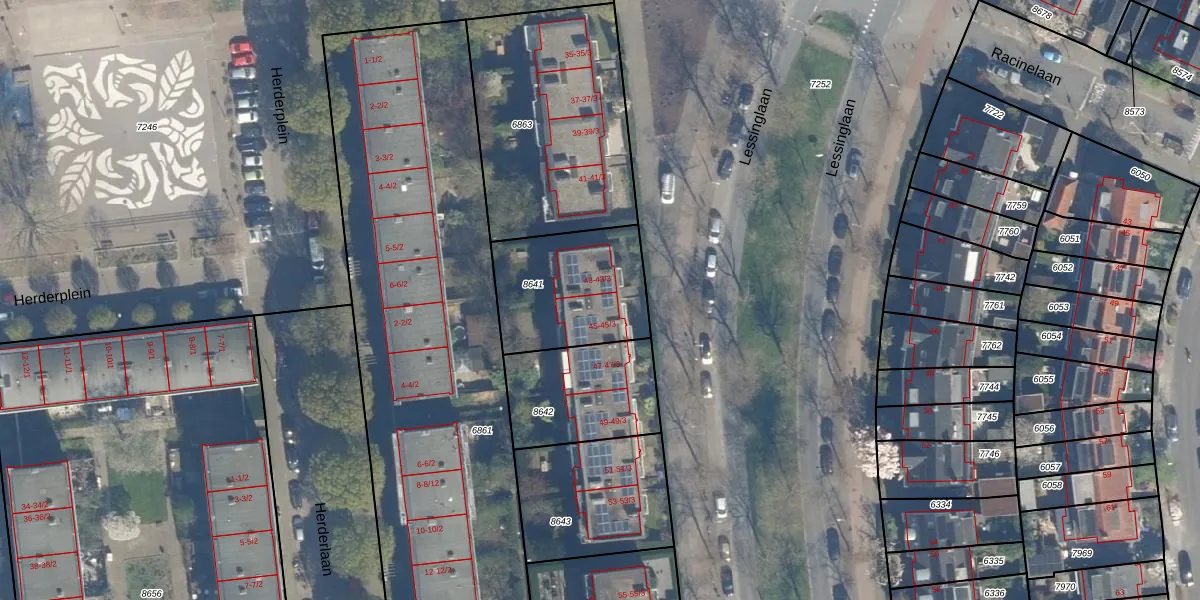 Lessinglaan 45 is gelegen op kadastraal perceel CTR00C8641. Deze kadastrale aanduiding is uniek en wordt gebruikt door het Kadaster om eigendomsrechten en andere zakelijke rechten vast te leggen. Het perceel maakt onderdeel uit van de kadastrale gemeente Catharijne.