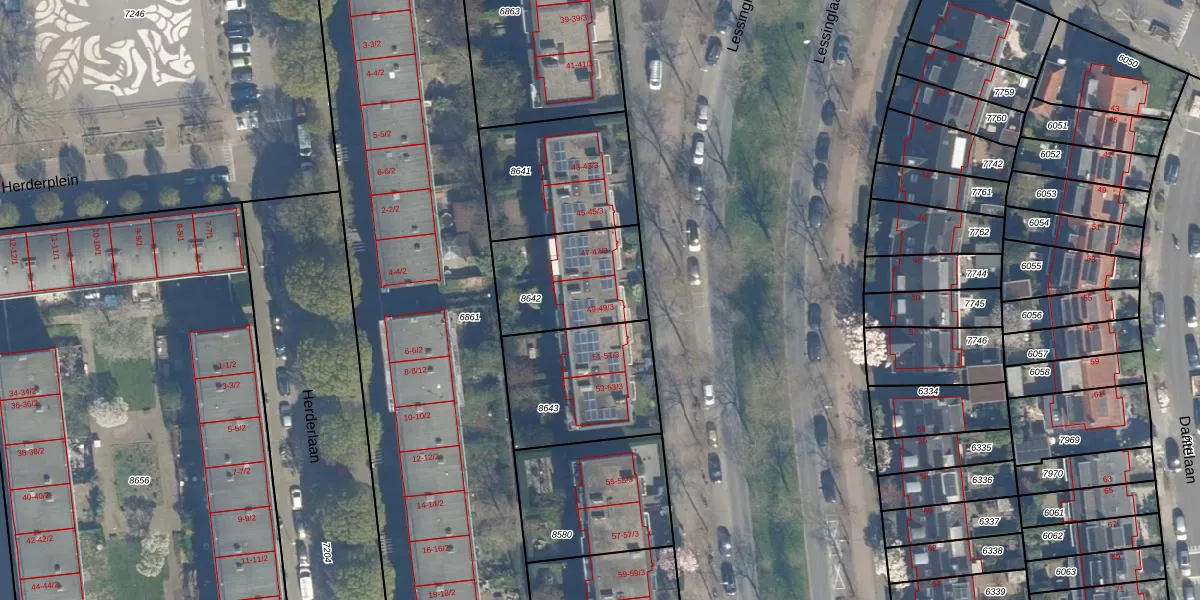 Lessinglaan 49-2 is gelegen op kadastraal perceel CTR00C8642. Deze kadastrale aanduiding is uniek en wordt gebruikt door het Kadaster om eigendomsrechten en andere zakelijke rechten vast te leggen. Het perceel maakt onderdeel uit van de kadastrale gemeente Catharijne.