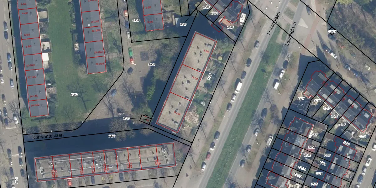 Lessinglaan 7-3 is gelegen op kadastraal perceel CTR00C7477. Deze kadastrale aanduiding is uniek en wordt gebruikt door het Kadaster om eigendomsrechten en andere zakelijke rechten vast te leggen. Het perceel maakt onderdeel uit van de kadastrale gemeente Catharijne.